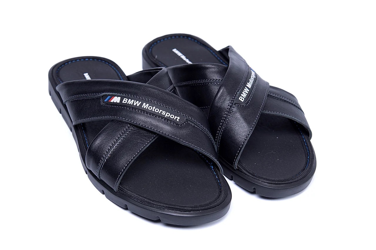 Чоловічі шкіряні літні шльопанці-сланці BMW MotorSport (код: 36ч шл)
